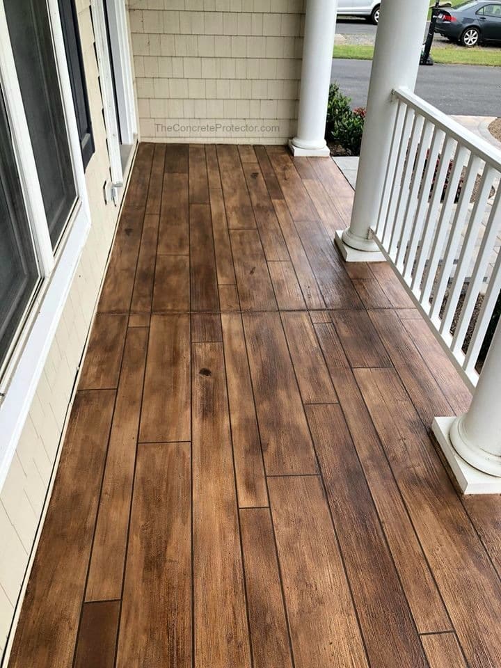 Imagine your existing concrete surface transformed to look like hardwood flooring. Our Rustic Decorative Concrete Wood resurfacing finish can make this a reality for your concrete floors! This system is extraordinarily popular and for good reason! Whether interior or exterior, on whatever existing concrete surface you have, this faux wood system option beats out other flooring options hands down.