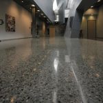 - Resistant to moisture transmission issues: Polished concrete allows the floor to breathe and eliminates issues that arise with other flooring materials that seal off the concrete, such as tile, etc.